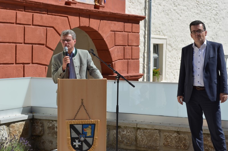 Kunstminister Bernd Sibler übereichte am Donnerstag, 307.2020 auf Schloss Emtmannsberg die Auszeichung für das Schloss (Fotos: Gerald Schreiner).